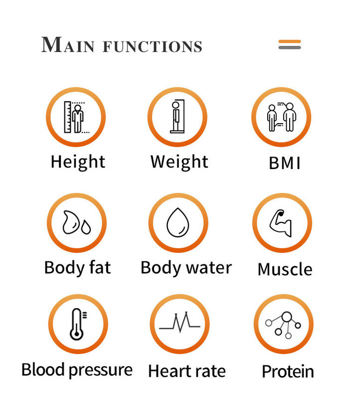 1.주요 기능은 키, 체중, BMI, 체지방, 혈압 및 맥박, 열전사 프린터입니다.